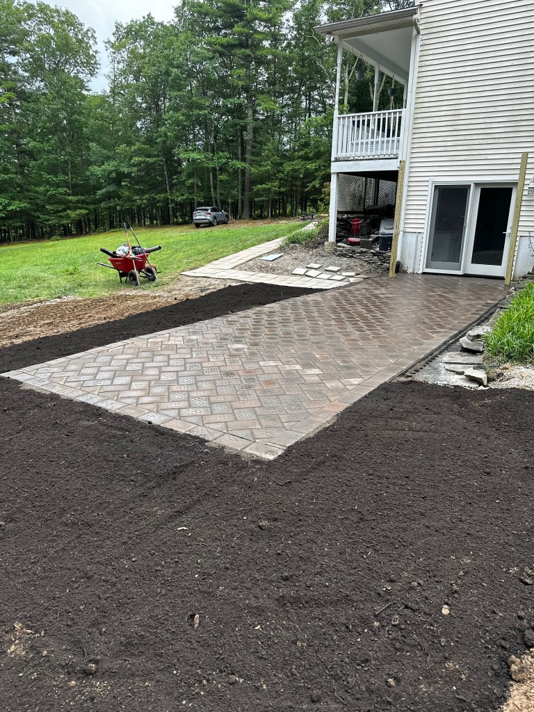 Pictured is the planting beds and walkway from the customer satisfaction above.